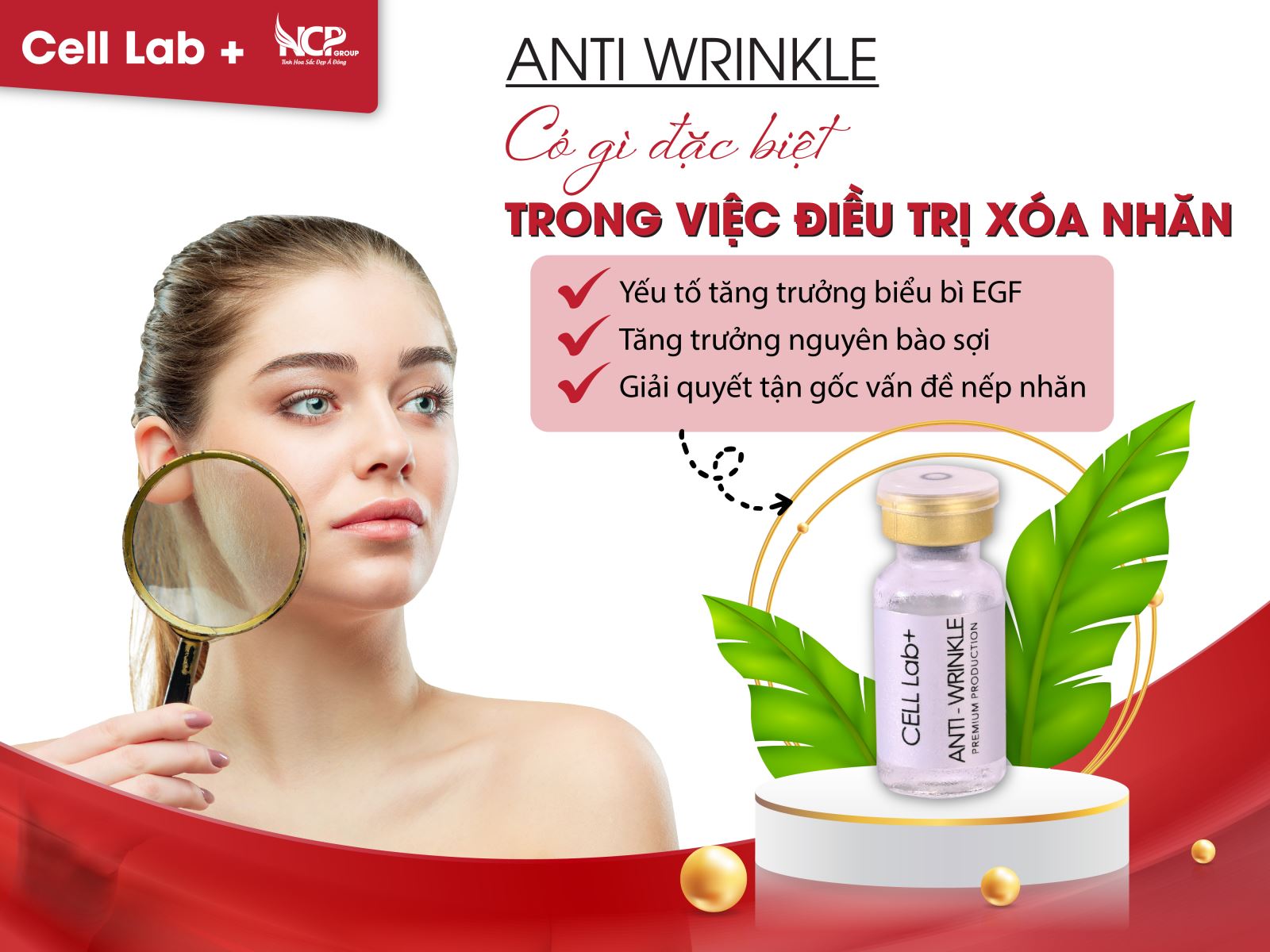 Anti Wrinkle chứa yếu tố tăng trưởng biểu bì EGF, yếu tố tăng trưởng nguyên bào sợi kiềm tính FGF, yếu tố tăng trưởng sợi đàn hồi, yếu tố tăng trưởng sợi collagen, albumin peptide….
