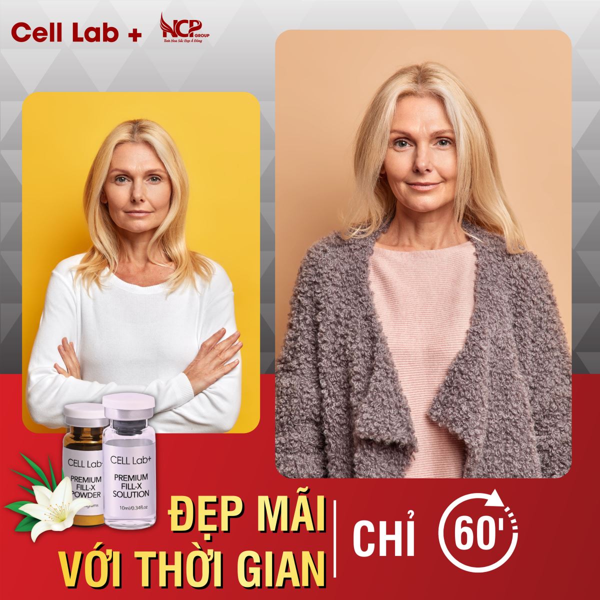 Premium Fill - X của Cell Lab đại diện cho một thế hệ chất làm đầy kích thích sinh học mới với hiệu quả trong cải thiện nếp nhăn trên khuôn mặt và điều chỉnh độ lỏng lẻo của da cũng như tăng thể tích các vùng thiếu hụt trên cơ thể.